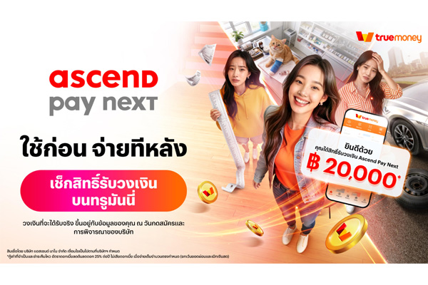 เปิดตัวแคมเปญ ‘เช็คสิทธิ์รับวงเงิน Ascend Pay Next’ (แอสเซนด์ เพย์ เน็กซ์) ใช้ก่อน จ่ายทีหลัง บนแอปทรูมันนี่ มุ่งยกระดับประสบการณ์วงเงินดิจิทัลให้ผู้ใช้สามารถเช็คสิทธิ์และรับวงเงินได้อย่างสะดวก รวดเร็ว รู้ผลทันทีผ่านแอป
