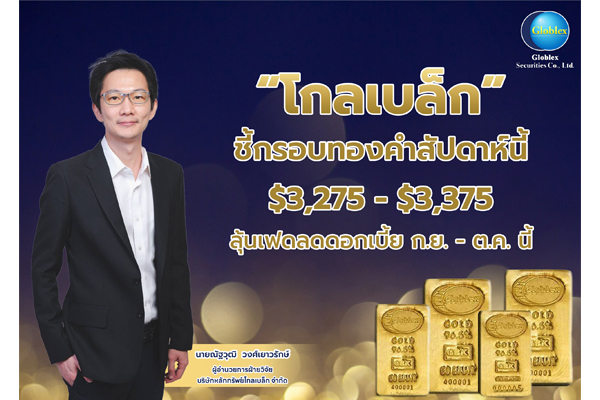 โกลเบล็ก ชี้กรอบทองคำสัปดาห์นี้ $3,275–$3,375 ลุ้นเฟดลดดอกเบี้ย