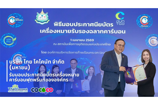 COCOCO รับประกาศนียบัตรเครื่องหมายคาร์บอนฟุตพริ้นท์