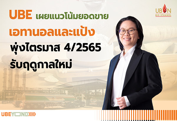 UBE เผยแนวโน้มยอดขายเอทานอลและแป้งพุ่งไตรมาส 4/65 รับฤดูกาลใหม่