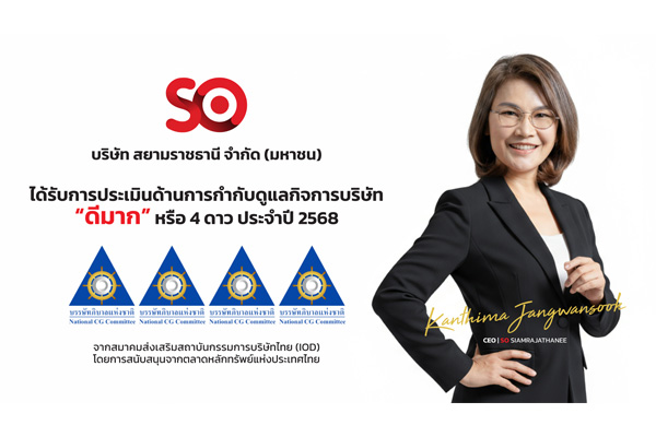 SO คว้า 4 ดาว CGR ปี 2568 สะท้อนธรรมาภิบาลโปร่งใส