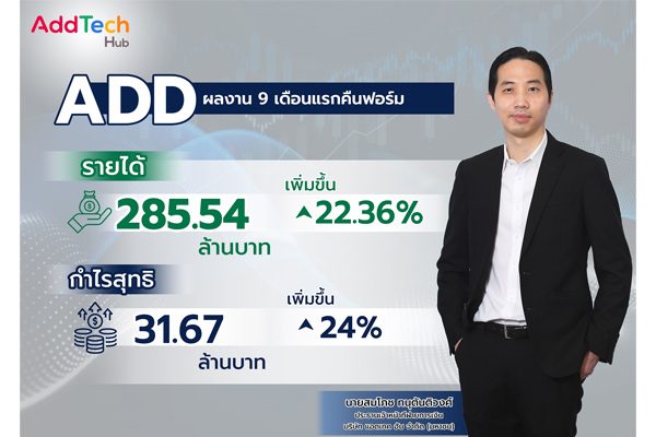 ADD คืนฟอร์ม 9 เดือนแรกกำไรทะยาน 24% อานิสงส์ยอดใช้ดิจิ […]