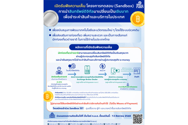 ก.ล.ต. เตรียมเปิด Sandbox เพิ่มทางเลือกให้นักท่องเที่ยวต่างชาติ
