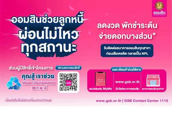 ออมสินลุยช่วยลูกหนี้ ใครติดขัดผ่อนไม่ไหวให้รีบติดต่อธนาคาร ก่อนเสียเครดิตกลายเป็น NPL