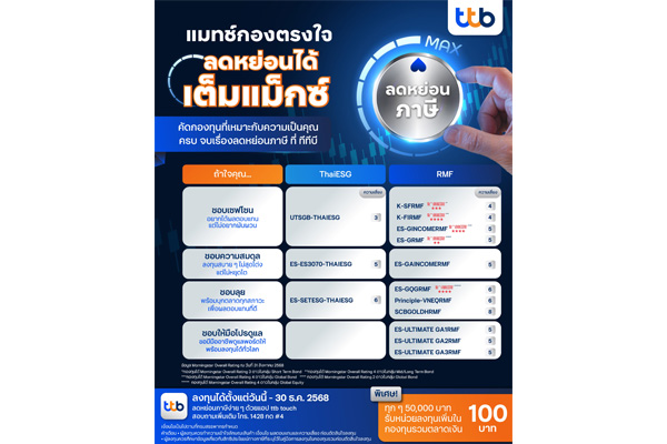 ทีทีบี แนะนำกองทุนลดหย่อนภาษี 2025 ครบทุกสไตล์