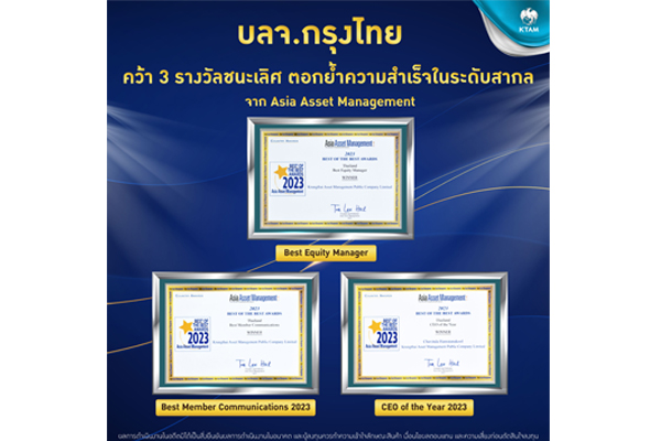 KTAM ตอกย้ำความสำเร็จ คว้า 3 รางวัลชนะเลิศ จากนิตยสาร Asia Asset Management