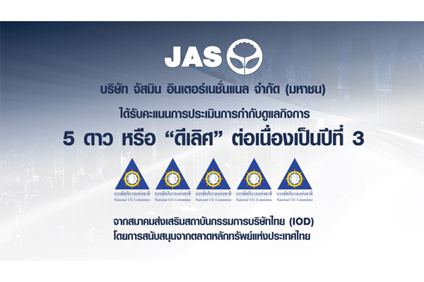 JAS คว้า 5 ดาว 3 ปีซ้อน จากการประเมิน “CGR 2025”