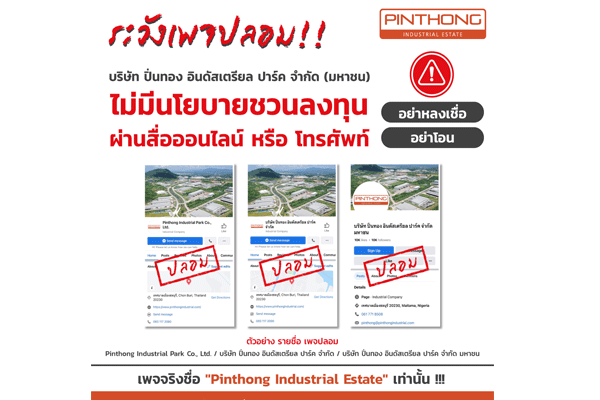 ‘บมจ.ปิ่นทอง อินดัสเตรียล ปาร์ค’ หรือ PIN แจ้งเตือนประชาชน