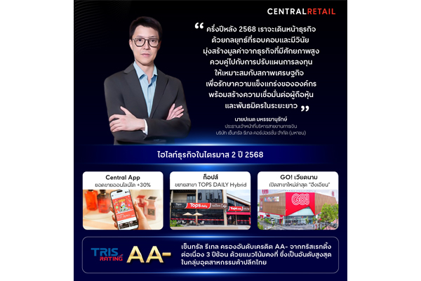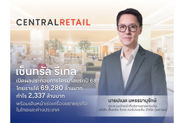 เซ็นทรัล รีเทล เปิดผลประกอบการปี 68 โกยรายได้ 69,280 ล้านบาท