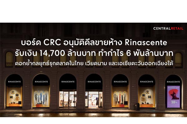 บอร์ด CRC อนุมัติดีลขายห้าง Rinascente รับเงิน 14,700 ล […]
