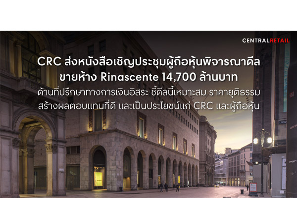 CRC ส่งหนังสือเชิญประชุมผู้ถือหุ้นพิจารณาดีลขายห้าง Rinascente