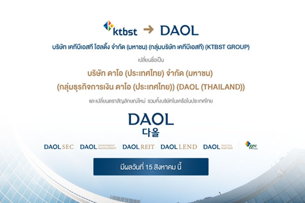 เคทีบีเอสที เปลี่ยนชื่อเป็น กลุ่มธุรกิจการเงิน ดาโอ (ประเทศไทย) หรือ DAOL (THAILAND)