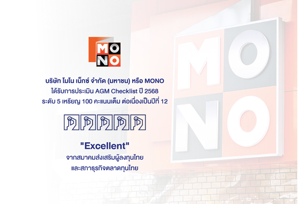 “MONO” คว้าคะแนน “AGM Checklist 2568” ระดับดีเยี่ยมสมคว […]