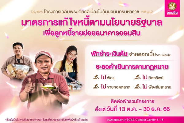ออมสินขานรับนโยบายรัฐ ลั่นช่วยเหลือลูกหนี้ให้พักชำระเงินต้นลูกหนี้ NPLs เริ่ม 13 ตุลาคมนี้