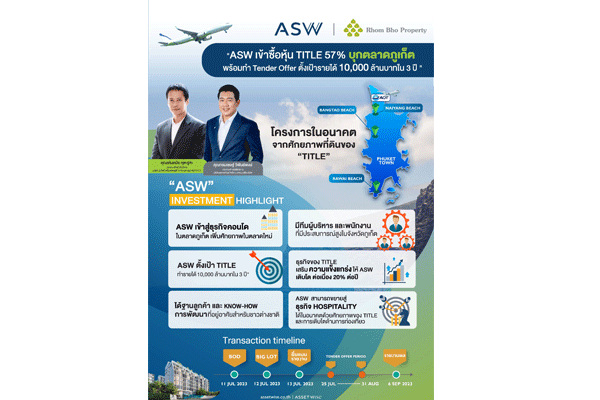 ASW’ เข้าซื้อหุ้น ‘TITLE’ 57% บุกตลาดอสังหาฯ