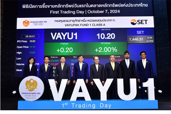 VAYU1 นำหน่วยลงทุนประเภทก. เข้าเทรดตลาดฯวันแรก ชูผลตอบแทนขั้นต่ำ 3.0% ต่อปี