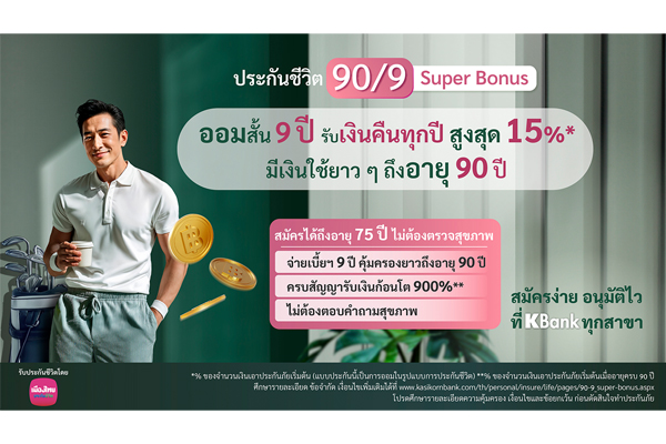 เมืองไทยประกันชีวิต ร่วมกับ กสิกรไทย เปิดตัวประกันชีวิต 90/9 Super Bonus
