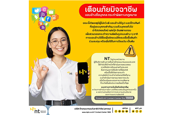 NT เตือนภัยมิจฉาชีพ แอบอ้างชื่อบุคคล กระทำผิดทางกฎหมาย