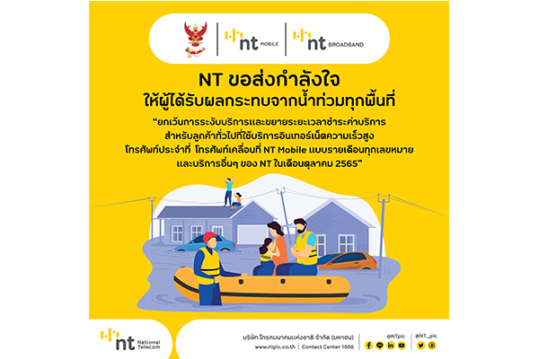 NT ช่วยเหลือผู้ประสบภัยน้ำท่วมทุกพื้นที่ พร้อมเฝ้าระวังรักษาเสถียรภาพโครงข่าย