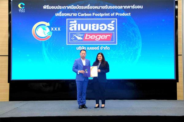 เบเยอร์ คว้าประกาศนียบัตรฉลากคาร์บอน ผู้นำนวัตกรรมสีรักษ์โลก