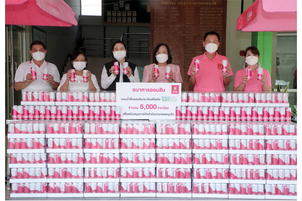 ออมสิน สนับสนุนภารกิจสำนักงานเขตพญาไท มอบน้ำดื่มออมสินกระป๋องรีไซเคิล