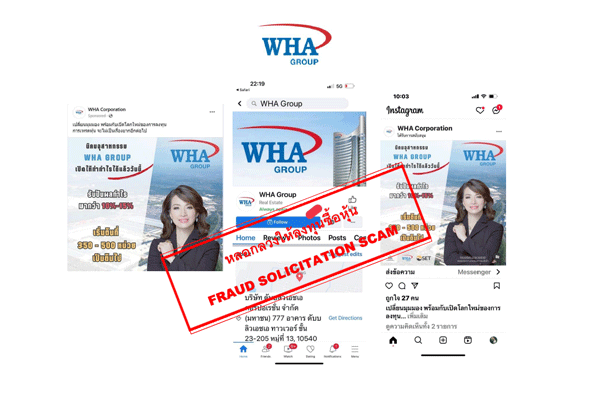 ดับบลิวเอชเอ กรุ๊ป เตือนภัย!!! มิจฉาชีพ แอบอ้างโฆษณาชวนเชื่อเทรดหุ้น