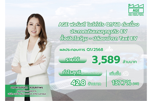 AGE ฟอร์มดี โชว์กำไร Q1/68 ต่อเนื่อง ประกาศเดินเกมรุกธุรกิจ EV