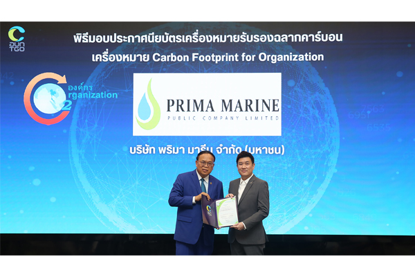 PRM รับมอบประกาศนียบัตร เครื่องหมายคาร์บอนฟุตพริ้นท์