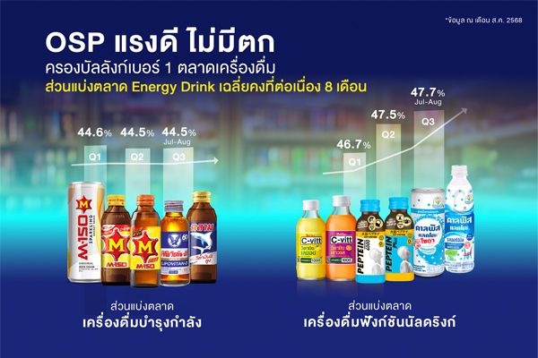 OSP แรงดี ไม่มีตก ครองบัลลังก์เบอร์ 1 ตลาดเครื่องดื่ม