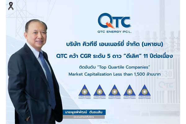 QTC คว้า CGR ระดับ 5 ดาว “ดีเลิศ” 11 ปีต่อเนื่อง ติดอันดับ Top Quartile