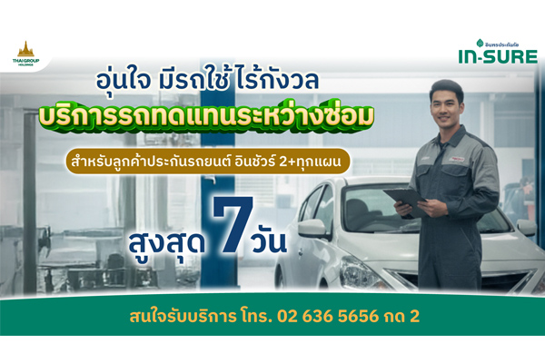 ลูกค้าประกันรถยนต์ชั้น 2+ IN-SURE บริการรถทดแทนระหว่างซ่อม
