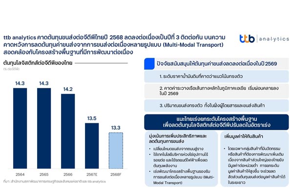 ttb analytics คาดต้นทุนขนส่งต่อจีดีพีไทยปี 2568 ลดลงต่อ […]