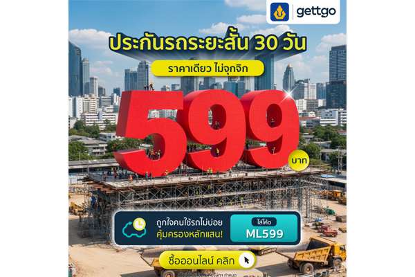 gettgo ขอบคุณความไว้วางใจจากลูกค้าทั่วประเทศ แจกโปรประกันรถระยะสั้น จากวิริยะประกันภัย ราคาเดียวเพียง 599 บาท gettgo เว็บไซต์เปรียบเทียบและซื้อประกันออนไลน์ เดิ