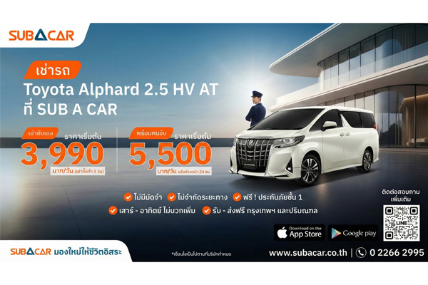 SUB A CAR ชูบริการใหม่ “Exclusive Alphard with Chauffeur” บริการเช่ารถอัลพาร์ดพร้อมคนขับ ตอบโจทย์ทั้งธุรกิจและครอบครัว SUB A CAR บริการรถเช่ารายบุคคลในเครืออาคเ