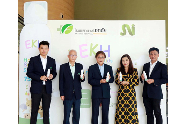 ยักษ์ลงทุน – นายแพทย์ อำนาจ เอื้ออารีมิตร (ที่ 2 จากซ้าย) กรรมการและผู้อำนวยการโรงพยาบาล พร้อมผู้บริหารบริษัท เอกชัยการแพทย์ จำกัด (มหาชน) (EKH) ถ่ายภาพร่วมกับ รศ.ดร.พรรณวิภา กฤษฎาพงษ์ (ที่ 2 จากขวา) ประธานกรรมการบริหาร กลุ่มบริษัท สเปเชียลตี้ เนเชอรัล อินโนเวชั่น (SNI) เนื่องในโอกาสได้ร่วมมือพัฒนาผลิตสเปรย์แอลกอฮอล์ทำความสะอาด Food Grade “EKH Kids” (ชนิดไม่ต้องล้างออก) ซึ่งผลิตจากธรรมชาติ ภายใต้แบรนด์โรงพยาบาลเอกชัย เพื่อตอบสนองกับความต้องการของตลาดด้านสุขอนามัย และได้เริ่มวางจำหน่ายแล้ว โดยงานดังกล่าวจัดขึ้นเมื่อเร็วๆนี้